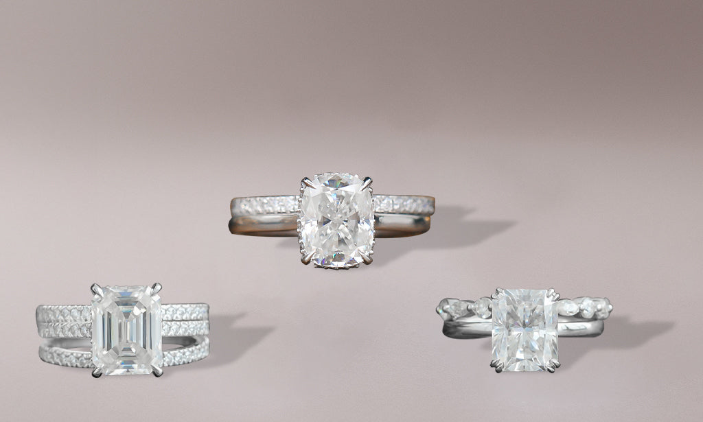Mark your special day with a stunning Moissanite bridal ring set. Featuring radiant engagement rings paired with matching wedding bands, each set is crafted for lasting beauty and brilliance. Celebrate love with an eco-friendly, sparkling symbol of commitment that lasts a lifetime.