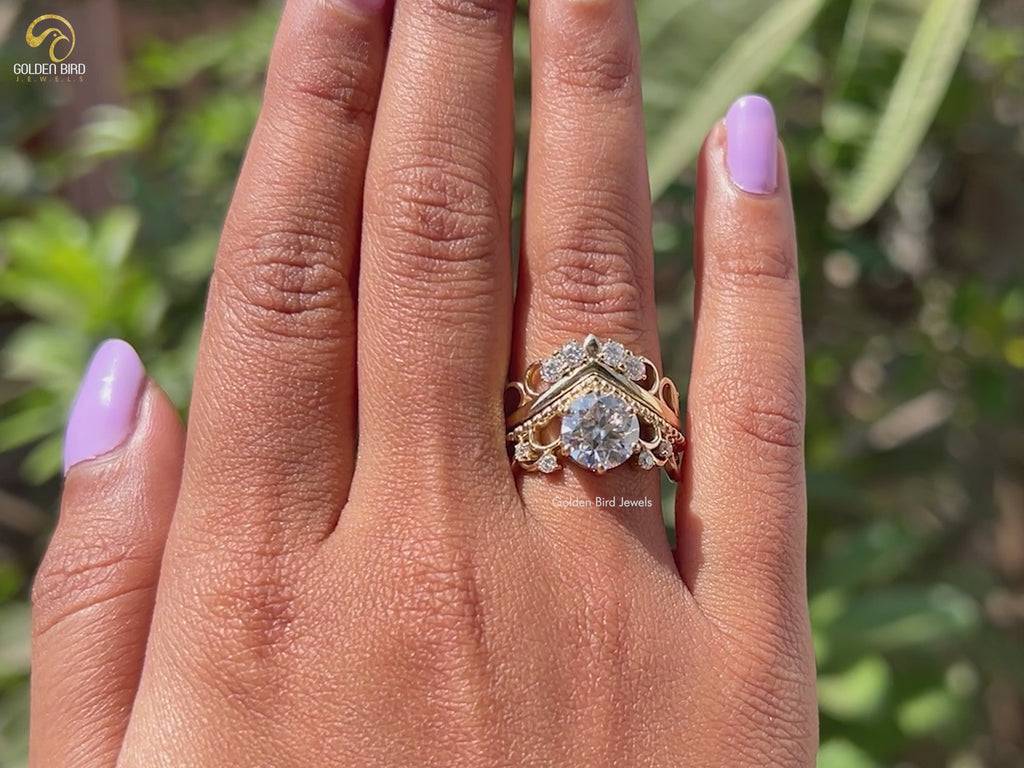 Round Cut Moissanite Bridal Wedding Vintage Ring Set