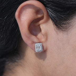 Lab Grown Emerald Cut Diamond Halo Earrings