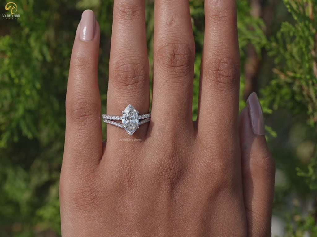 Marquise Cut Lab Diamond Bridal Ring Set