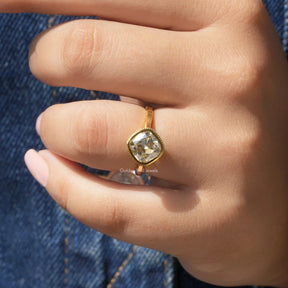 Old Mine Cushion Cut Bezel Set Solitaire Ring