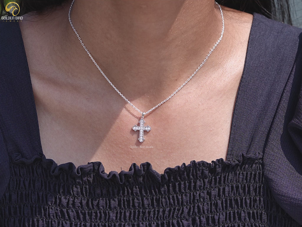 Round Cut Moissanite Encrusted Cross Pendant