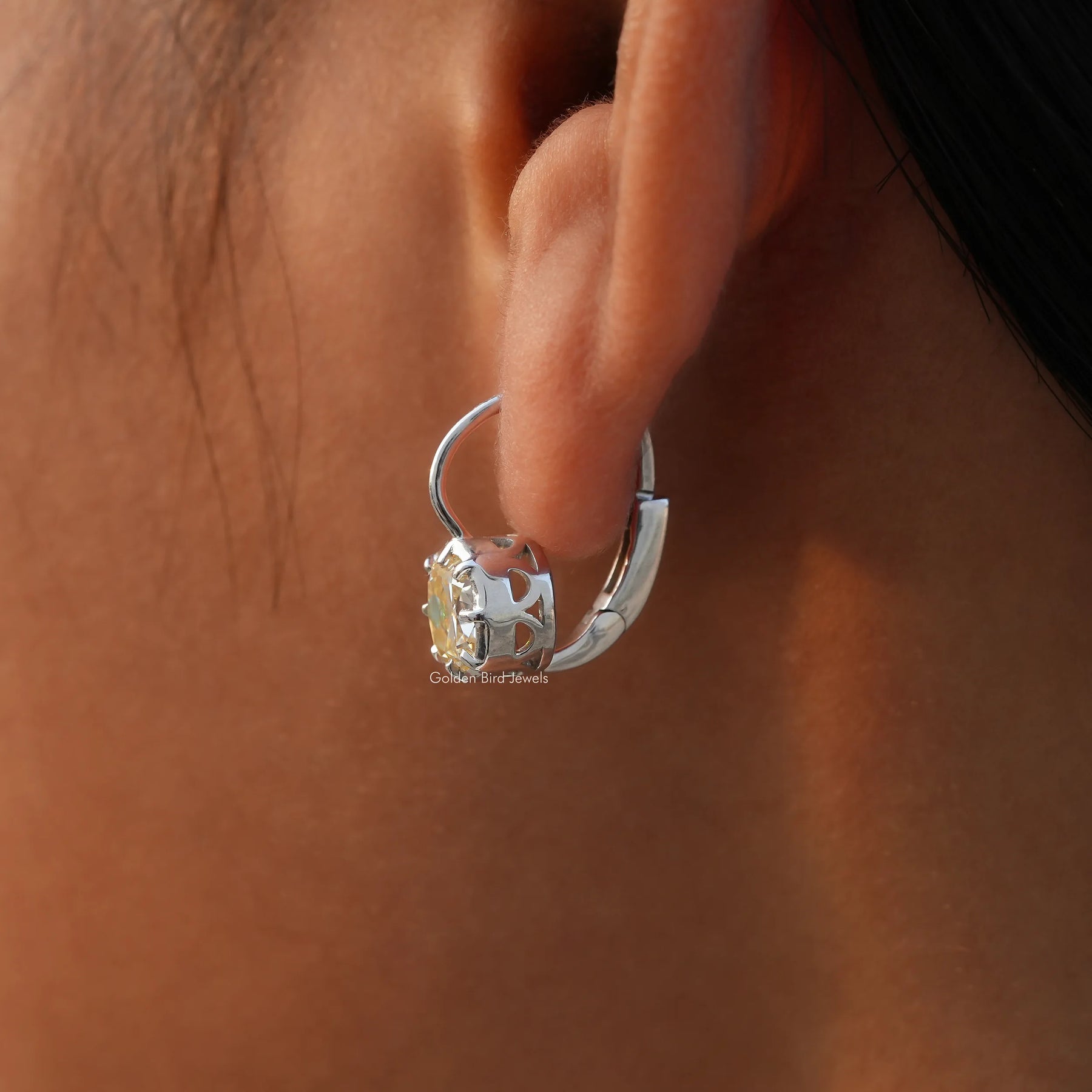 Yellow Moissanite Old Mine Cushion Dangle Earrings